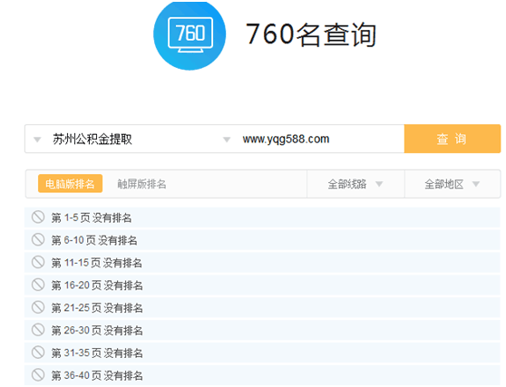 我们首先看下网站做的关键词情况发现了用760名查询出的结果是没有任何排名出现的,这也代表这这个网站是新站做的没有多久,我们首先要清楚这一点。