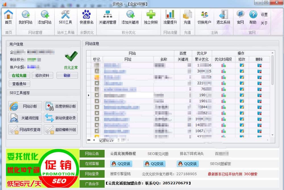 8运用云营销软件模拟点解,云营销软件是模拟人在百度检索框输入你想优化的关键词浏览你的网站,平均浏览网页量和平均浏览时间都有设置,而且IP地址都是不一样的。软件可以提升百度对网站关键词的关注度和友好度,从而使网站关键字排名迅速提升。